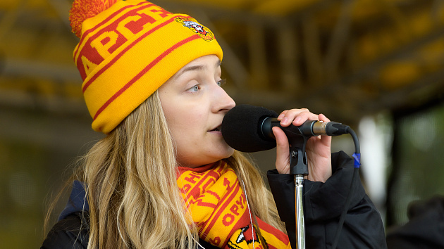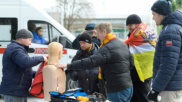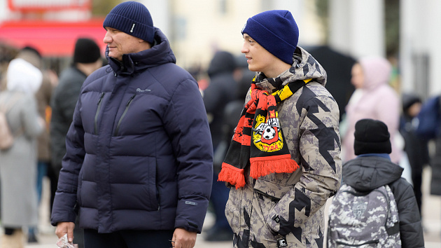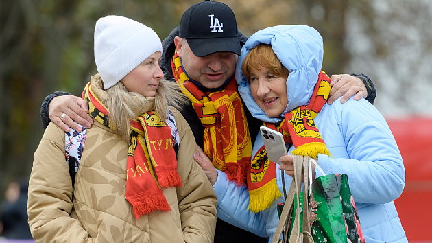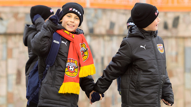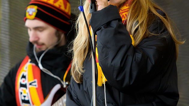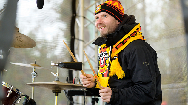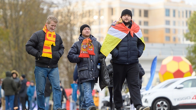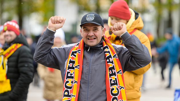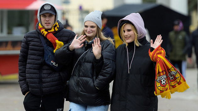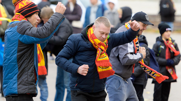 Красно-желтая фан-зона перед матчем с «Соколом»