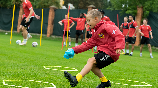 Юный воспитанник академии «Арсенал» посетил тренировку оружейников